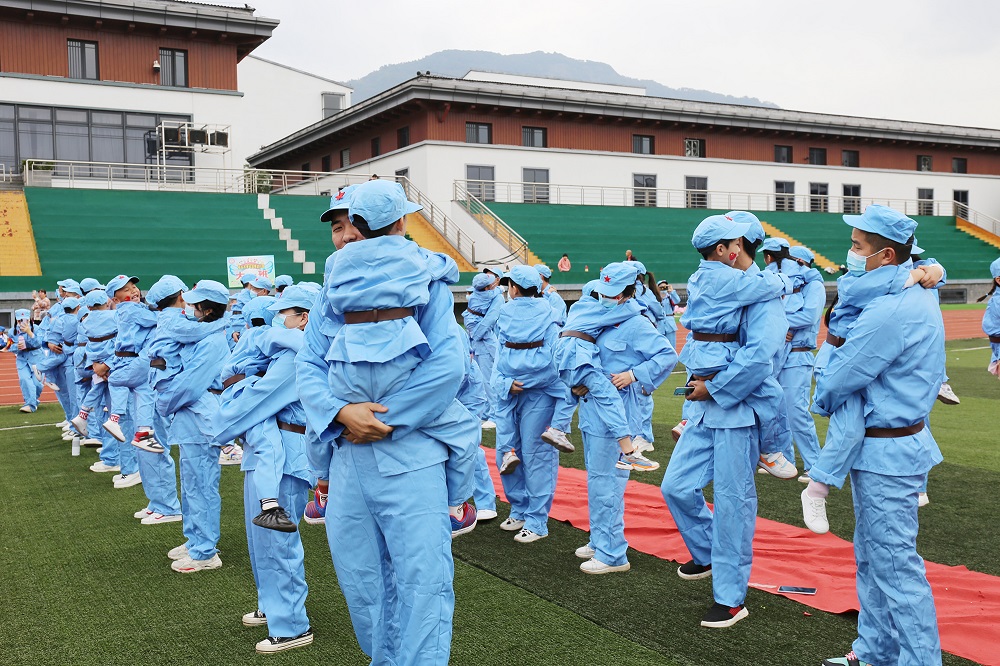 每個(gè)方陣的小運(yùn)動(dòng)員在老師的帶領(lǐng)下進(jìn)行舞蹈展示,并邀請(qǐng)了附近學(xué)校的小學(xué)生姐姐們助陣。各位家長(zhǎng)在操場(chǎng)上不停拍手叫好,為孩子們加油鼓勁。