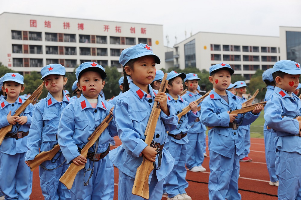 運(yùn)動(dòng)會(huì)在鏗鏘有力的歌聲中徐徐拉開了帷幕。小小運(yùn)動(dòng)員們分為各個(gè)生產(chǎn)小隊(duì),身著各自隊(duì)列的服裝,手拿“生產(chǎn)工具”,在老師的帶領(lǐng)下踩著整齊的步伐,意氣風(fēng)發(fā)、斗志昂揚(yáng)地行進(jìn)到主席臺(tái),響亮地喊出各班的口號(hào)。