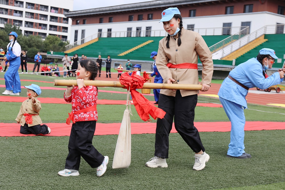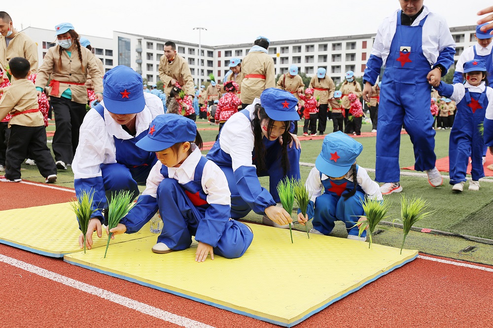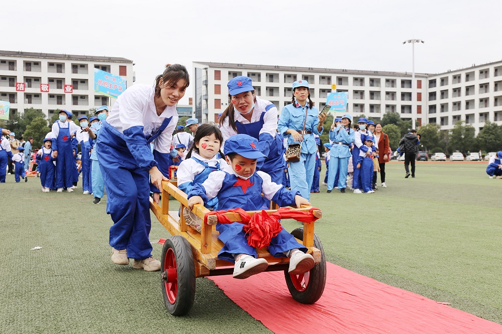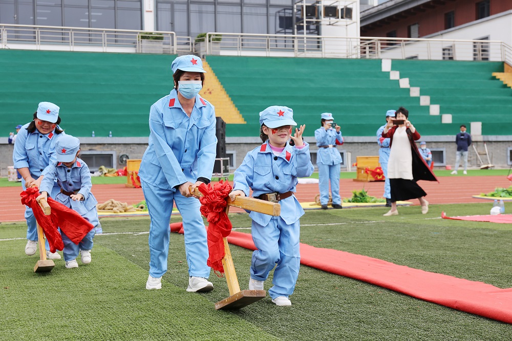 親子游戲環(huán)節(jié),家長(zhǎng)和孩子們共同參與插秧勞作、運(yùn)輸糧食、推小推車等小游戲。在爸爸媽媽的鼓勵(lì)聲中,在同伴的加油聲中,孩子們勇敢地往前沖,感受著游戲的快樂(lè)。場(chǎng)上不時(shí)爆發(fā)出快樂(lè)的笑聲,孩子們臉上洋溢著天真幸福的笑容,整個(gè)運(yùn)動(dòng)場(chǎng)瞬間變成了歡樂(lè)的海洋。