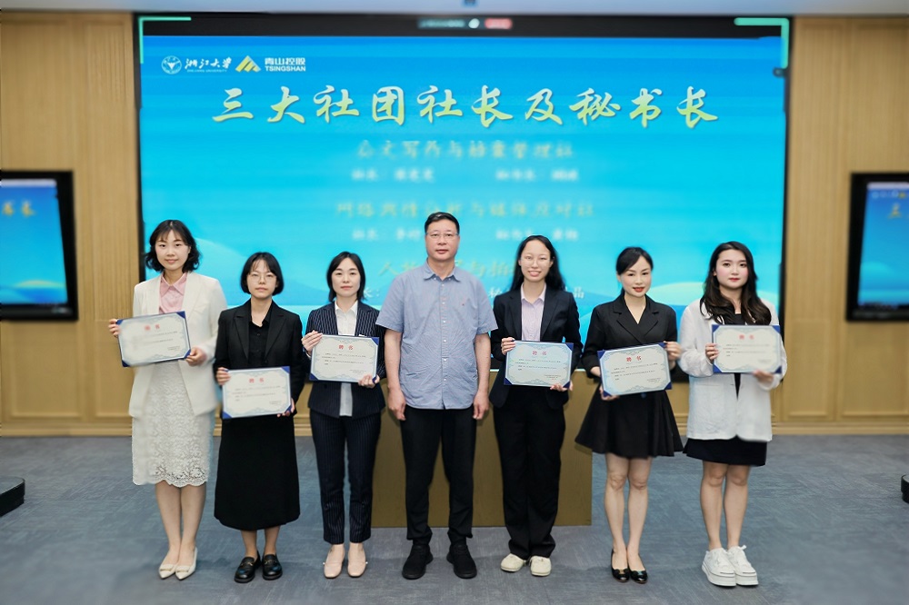 為鞏固深化學(xué)習(xí)成果,本期企業(yè)公文寫作與新聞宣傳專題研修班結(jié)業(yè)后,創(chuàng)新地開設(shè)了三大特色社團(tuán):公文寫作與檔案管理社、新聞通訊社、人物采寫(新聞)與拍攝社。未來,社團(tuán)將在高校教師和專家的指導(dǎo)下開展多元化社團(tuán)活動(dòng),為學(xué)員打造持續(xù)成長的進(jìn)階平臺(tái),構(gòu)建長效學(xué)習(xí)生態(tài)。本次結(jié)業(yè)典禮環(huán)節(jié)特設(shè)社團(tuán)聘任儀式,青山國際商學(xué)院(籌)行政副院長為三大社團(tuán)的社長及秘書長頒發(fā)聘書。