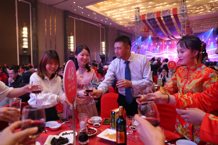 儀式圓滿結束后,郭學斌為50對新人證婚并祝福這50對新人們婚姻幸福,地久天長。同時也希望他們擔負起對家庭和社會的責任,共創(chuàng)輝煌燦爛的生活和事業(yè)。隨后喜宴開始,寧德市總工會準備了精彩的歌舞表演為大家助興,為新人送去美好祝福。大家歡聲笑語,舉杯暢飲,青拓集團行政總經(jīng)理鐘盛江還與青拓的10對新人碰杯并送上深深的祝福,新人們紛紛感謝寧德工會、青拓工會這些貼心的“娘家人”,并表示將堅定不移地在寧德這片沃土發(fā)揮自己的光和熱。