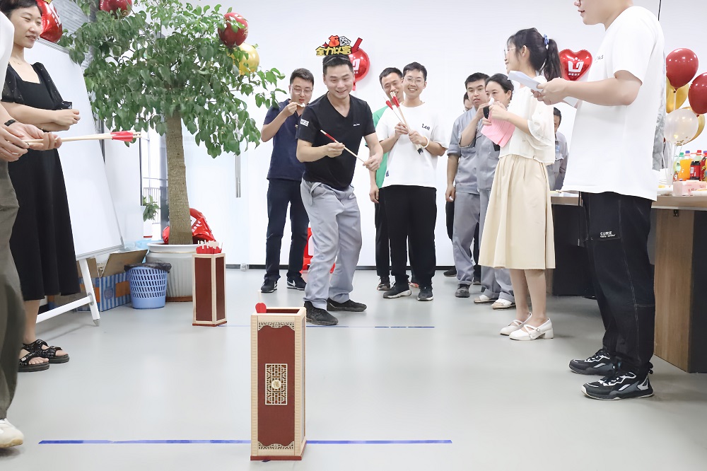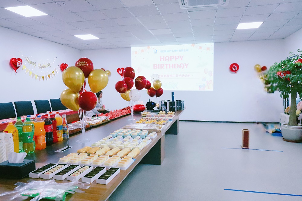 為體現(xiàn)公司人文關(guān)懷,調(diào)動員工積極性,感受傳統(tǒng)節(jié)日氛圍,6月21日,福安國隆納米材料有限公司在福安市灣塢工貿(mào)區(qū)舉辦了“玩轉(zhuǎn)端午,放‘粽’快樂”端午生日會?;顒蝇F(xiàn)場準(zhǔn)備了精致下午茶,并舉辦了投壺競技、趣味套圈、端午團(tuán)扇DIY等活動。
