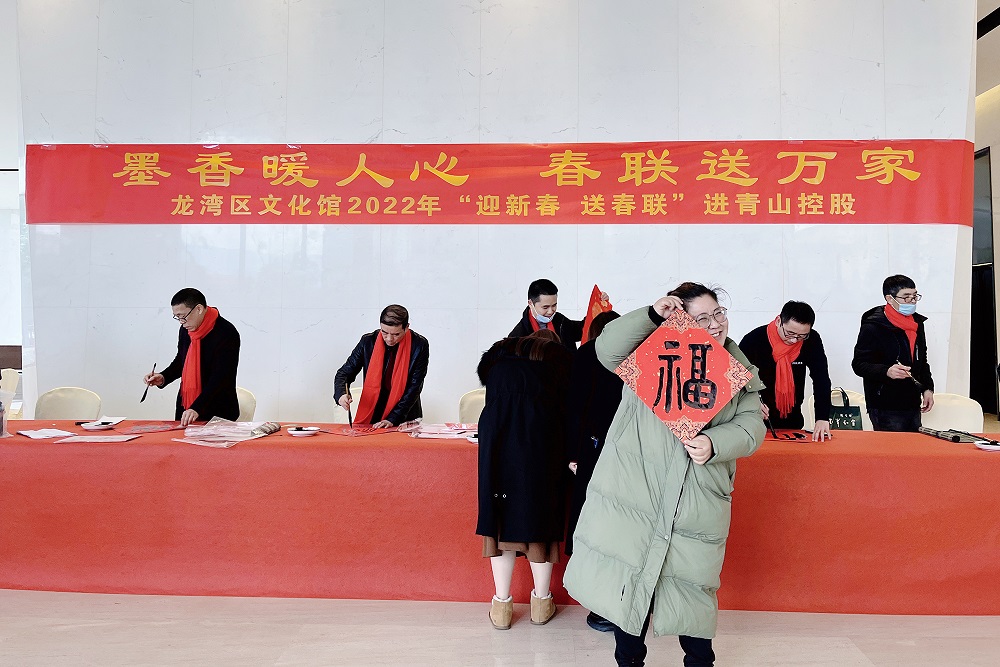 無(wú)聯(lián)不成春,有聯(lián)春更濃。春節(jié)將至,為弘揚(yáng)中華傳統(tǒng)文化,營(yíng)造歡樂(lè)祥和的新春氛圍,1月24日上午,青山控股集團(tuán)有限公司聯(lián)合溫州市龍灣區(qū)文化館在青山總部大樓開(kāi)展了2022年“迎新春 送春聯(lián)”活動(dòng)。