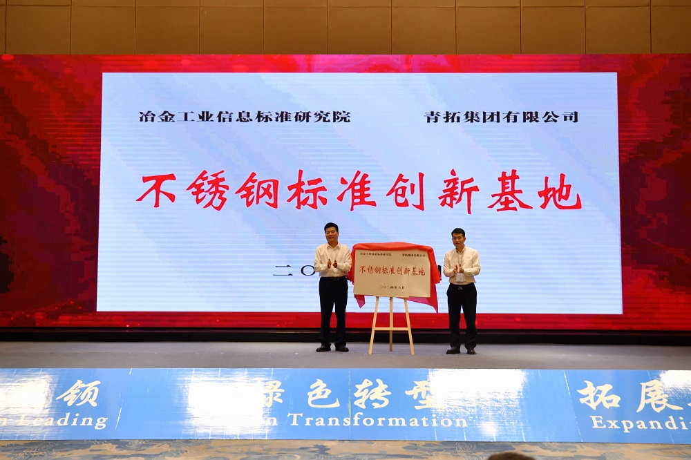 ? ? 活動(dòng)現(xiàn)場,冶金工業(yè)信息標(biāo)準(zhǔn)研究院與青拓集團(tuán)共同揭牌“不銹鋼標(biāo)準(zhǔn)創(chuàng)新研發(fā)基地”。
