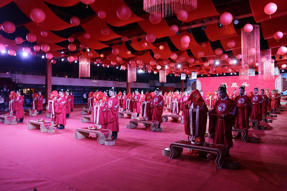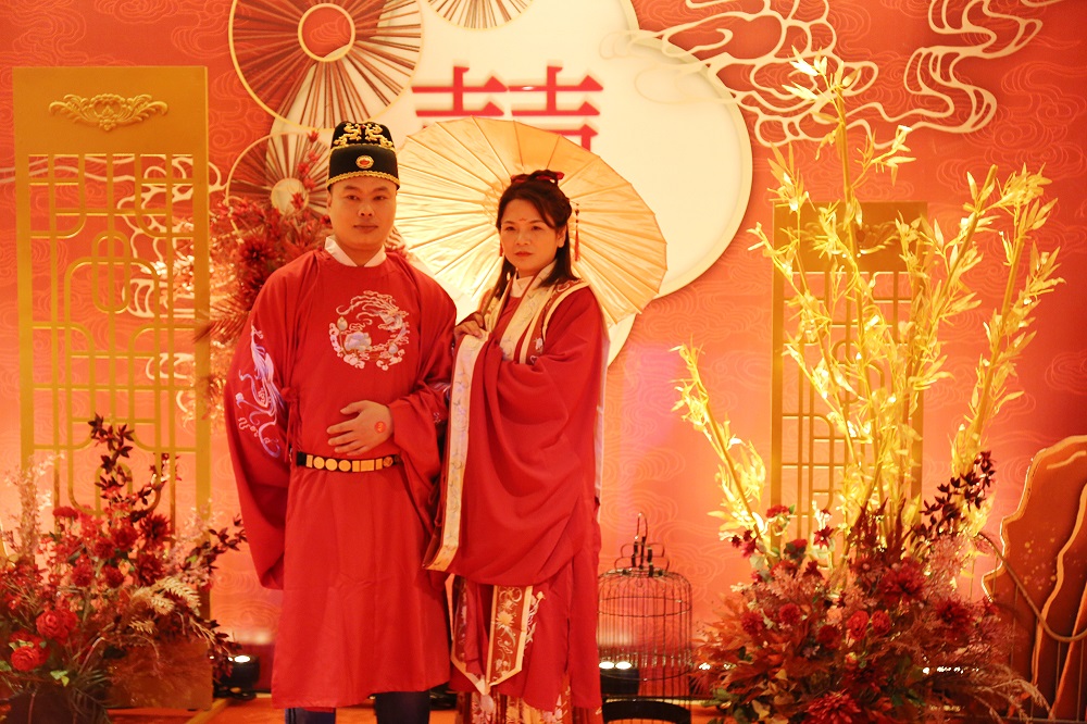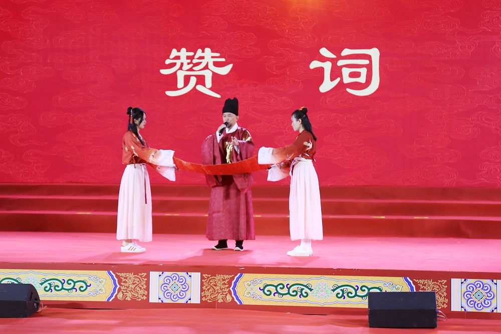 伴隨著錯(cuò)落有致的鼓點(diǎn),婚禮在開場舞表演后正式開始。