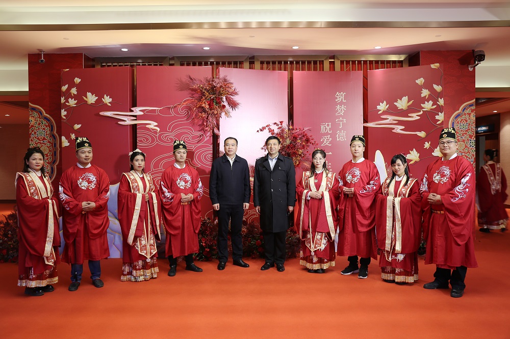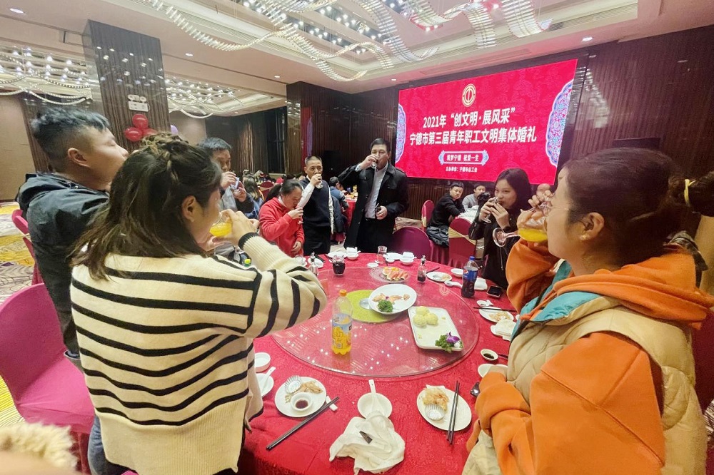 12月6日下午,由寧德市總工會(huì)主辦的2021年寧德市“創(chuàng)文明、展風(fēng)采”第三屆青年職工文明集體婚禮,在寧德市體育中心籃球館舉行。寧德市委、市政府主要領(lǐng)導(dǎo)出席集體婚禮活動(dòng),共同見證44對(duì)新人一生中最重要、最美好、最幸福的時(shí)刻。青拓集團(tuán)有限公司工會(huì)主席、行政總經(jīng)理鐘盛江受邀參加觀禮,并為青拓集團(tuán)的4對(duì)新人送去最真摯的祝福。