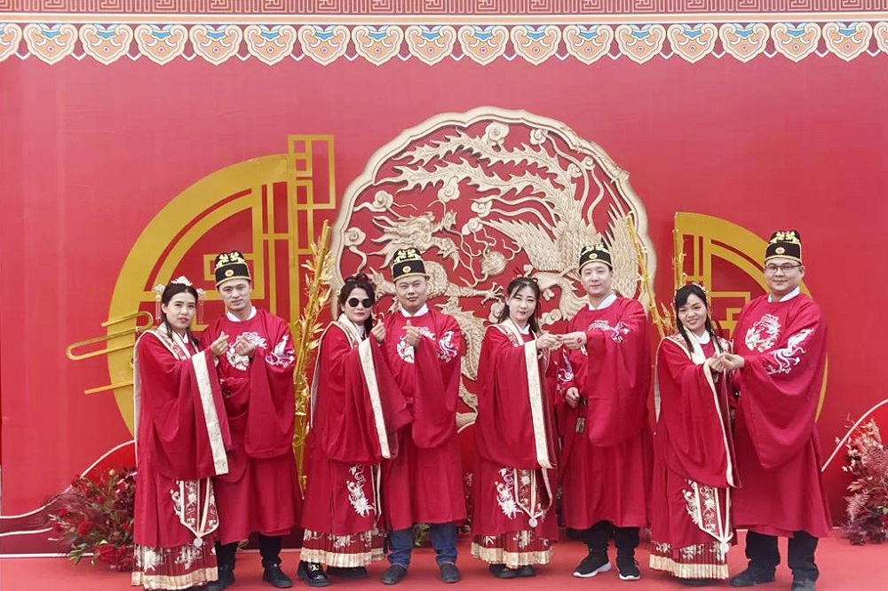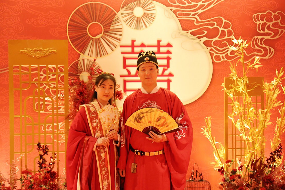伴隨著悠揚(yáng)的古樂,新人們身著明制傳統(tǒng)婚服,步履優(yōu)雅而莊重地進(jìn)入典禮現(xiàn)場。在司儀的帶領(lǐng)下,新人們互行禮敬天地、同牢合巹、解纓執(zhí)手、交換信物等有著獨(dú)特寓意的禮儀,許下攜手一生的誓言,結(jié)成百年之好。現(xiàn)場氣勢(shì)恢宏、詩情畫意的場景,充滿了古典氣息,用氣勢(shì)磅礴、富有意義的婚禮進(jìn)程,成就新人一生中最幸福的時(shí)刻,也給新人們留下了深刻的印象。