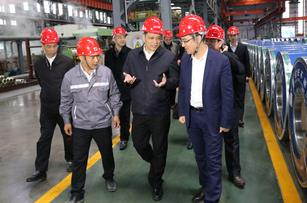 郭錫文一行首先走進(jìn)宏旺不銹鋼冷軋生產(chǎn)車間實(shí)地參觀考察,聽取相關(guān)情況介紹,重點(diǎn)對企業(yè)生產(chǎn)運(yùn)行、工藝創(chuàng)新、發(fā)展規(guī)模、未來前景等情況進(jìn)行了解。隨后,一行人員來到青拓集團(tuán)營運(yùn)中心,感受企業(yè)綠水青山與金山銀山協(xié)同共進(jìn)的發(fā)展理念。