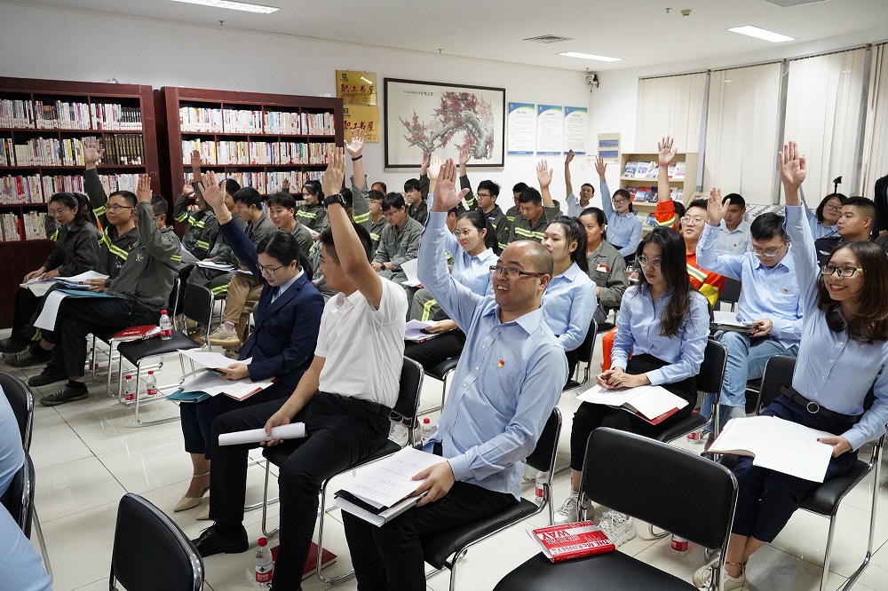 此次活動(dòng)中,10位來自各黨支部和各部門的代表結(jié)合崗位工作實(shí)際和公司發(fā)展規(guī)劃分享了讀書心得,充分展現(xiàn)了廣大干部職工積極向上的精神面貌和敢于打勝仗的決心。精彩的分享引起現(xiàn)場(chǎng)觀眾的共鳴,贏得了陣陣掌聲?;顒?dòng)還穿插了黨史知識(shí)問答環(huán)節(jié),大家積極搶答,現(xiàn)場(chǎng)氣氛活躍。