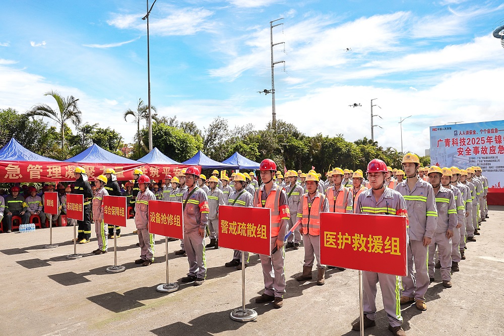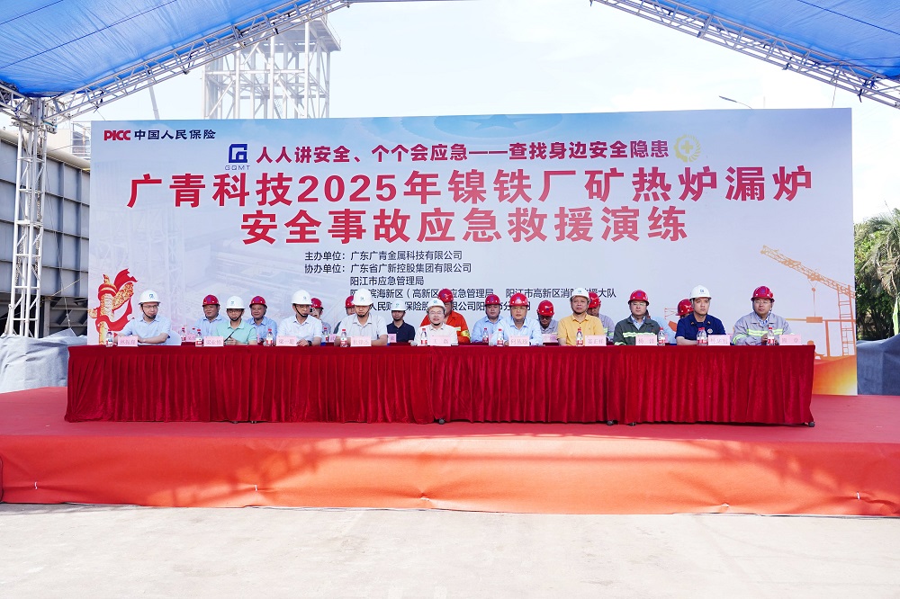 為深入學(xué)習(xí)貫徹習(xí)近平總書記關(guān)于安全生產(chǎn)重要論述,全面落實“人人講安全、個個會應(yīng)急——查找身邊安全隱患”的安全生產(chǎn)月主題,6月24日,廣東廣青金屬科技有限公司在鎳鐵廠舉行2025年礦熱爐漏爐安全事故應(yīng)急救援演練。公司董事、總經(jīng)理何叢珍等領(lǐng)導(dǎo)班子成員以及260多名員工代表參加演練;廣新集團安全總監(jiān)兼安環(huán)部總經(jīng)理王磊,陽江市應(yīng)急管理局基礎(chǔ)科科長杜鋒杰,陽江濱海新區(qū)應(yīng)急管理局局長梁一聰,陽江高新區(qū)消防大隊、中國人保陽江分公司等相關(guān)單位領(lǐng)導(dǎo)到場觀摩指導(dǎo)。