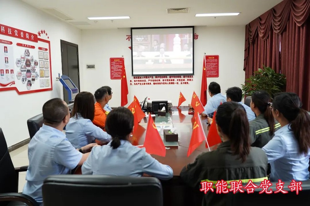 在辦公樓一樓會議室的主會場,公司黨委委員和其他領(lǐng)導(dǎo)班子成員,與綜合部黨支部全體黨員一起,手持黨旗,集中觀看慶祝大會,共同見證建黨100周年這一舉世矚目的歷史時刻。黨員、入黨積極分子及職工代表在廠部、車間的6個分會場集中收看大會直播實況。