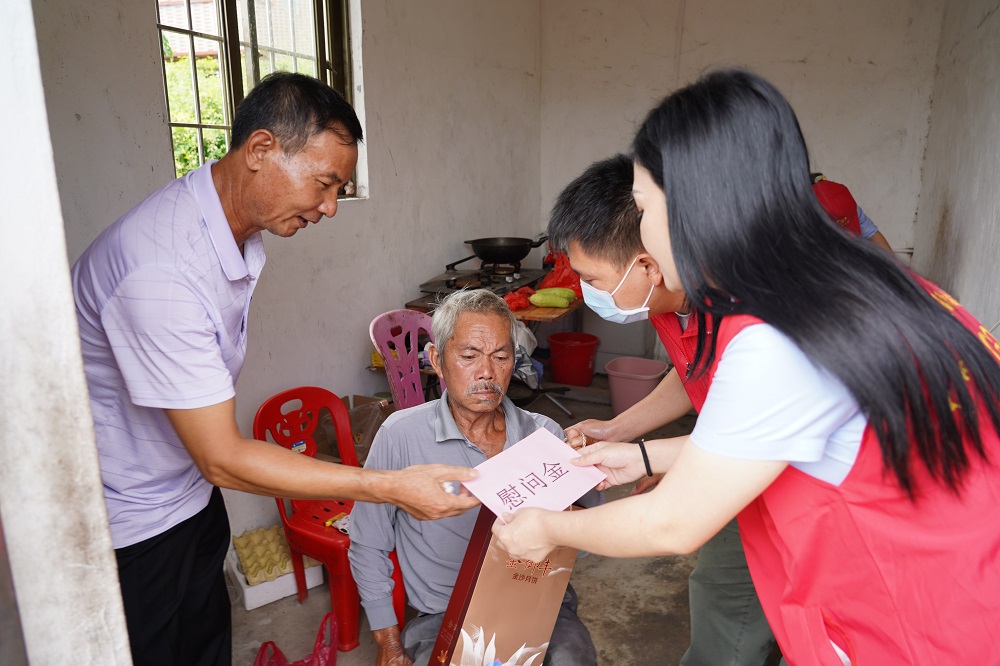 在潭震村,慰問(wèn)組到困難群眾家中探訪,貼心詢問(wèn)他們的身體狀況及需要幫助解決的實(shí)際困難,并送上了大米、食用油和月餅等節(jié)日慰問(wèn)品。