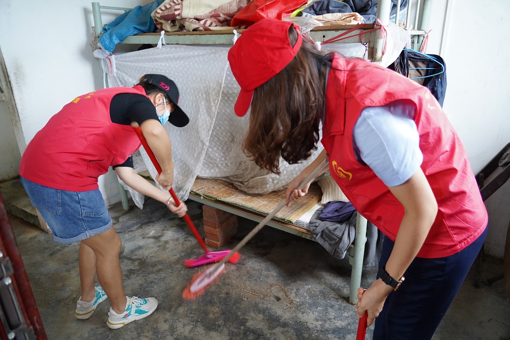 在北宿村,公司志愿者們看望慰問(wèn)了四位五保人員,幫老人打掃屋內(nèi)衛(wèi)生,清除了門前雜草??吹阶约旱姆孔幼兊酶筛蓛魞?,老人露出了開(kāi)心的笑容。
