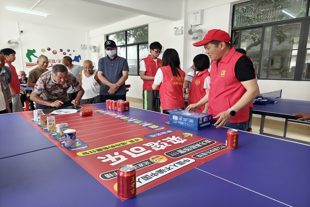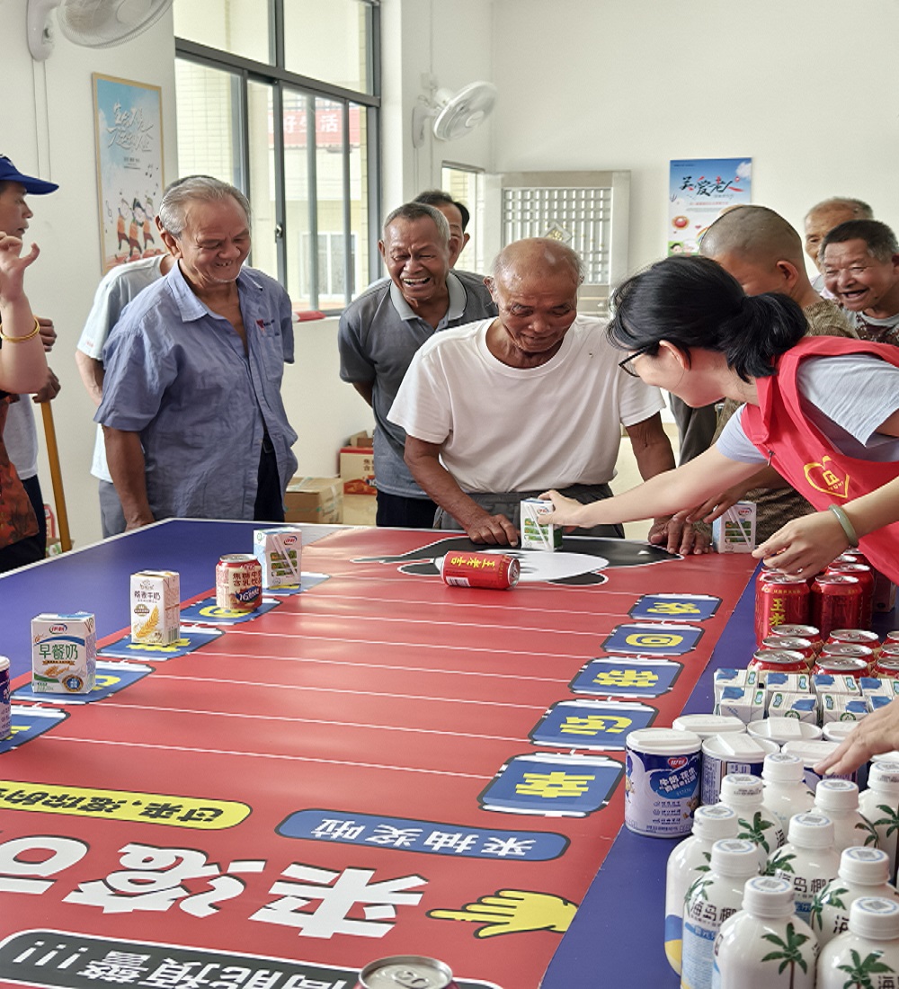 為了讓這個(gè)端午節(jié)更加難忘,志愿者服務(wù)隊(duì)還精心策劃了一系列趣味盎然的互動(dòng)游戲。在“套圈圈”游戲中,老人們手握彩色圈圈,瞄準(zhǔn)擺放著小禮品的立柱,每套中一次便引來一陣歡笑和掌聲;“投壺”環(huán)節(jié),老少同樂,展現(xiàn)了傳統(tǒng)游戲的魅力,參與者們屏息凝神,每一次精準(zhǔn)的投擲都讓現(xiàn)場(chǎng)氣氛高漲;而“夾珠子”比賽,則考驗(yàn)著大家的手眼協(xié)調(diào)能力,在輕松愉快的氛圍中,老人們展現(xiàn)出了不凡的技巧,贏得了陣陣喝彩;“抽獎(jiǎng)滾滾樂”游戲最受老人們的歡迎,每一次的參與都有不一樣的驚喜。