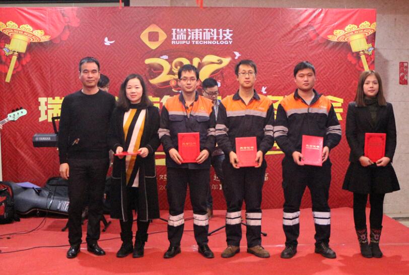 在大家熱烈的掌聲中,瑞浦公司先進(jìn)集體代表以及先進(jìn)個(gè)人紛紛上臺(tái)接受表彰,公司領(lǐng)導(dǎo)為他們頒發(fā)了榮譽(yù)證書(shū)及獎(jiǎng)金。此次年終酒會(huì),公司還特地邀請(qǐng)樂(lè)隊(duì)為大家表演節(jié)目,一首首動(dòng)聽(tīng)的歌曲縈繞在大家耳旁。