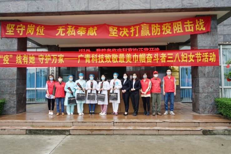 新冠肺炎疫情發(fā)生以來(lái),陽(yáng)江高新區(qū)人民醫(yī)院的198名女醫(yī)護(hù)人員迎風(fēng)逆行,戰(zhàn)疫一線,一直堅(jiān)守崗位,艱苦奮戰(zhàn),守護(hù)著人民群眾的生命安全和身體健康。3月8日,正值第110個(gè)“三八”國(guó)際勞動(dòng)?jì)D女節(jié),廣東廣青金屬科技有限公司婦委會(huì)攜廣青科技志愿者服務(wù)隊(duì)前往陽(yáng)江高新區(qū)人民醫(yī)院開展了“‘疫’線有她 守護(hù)萬(wàn)家——致敬最美巾幗奮斗者”三八婦女節(jié)活動(dòng)。