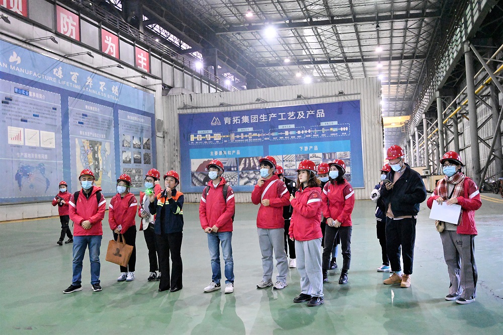 一行人員還參觀了青拓科技熱軋生產(chǎn)線,實(shí)地察看青拓不銹鋼熱軋生產(chǎn)工藝技術(shù),并赴青拓室內(nèi)籃球館、游泳館及青山街拍攝了萬(wàn)人生活區(qū)員工業(yè)余生活場(chǎng)景。