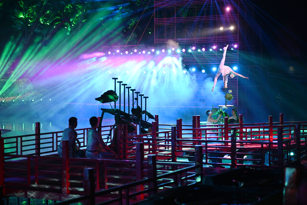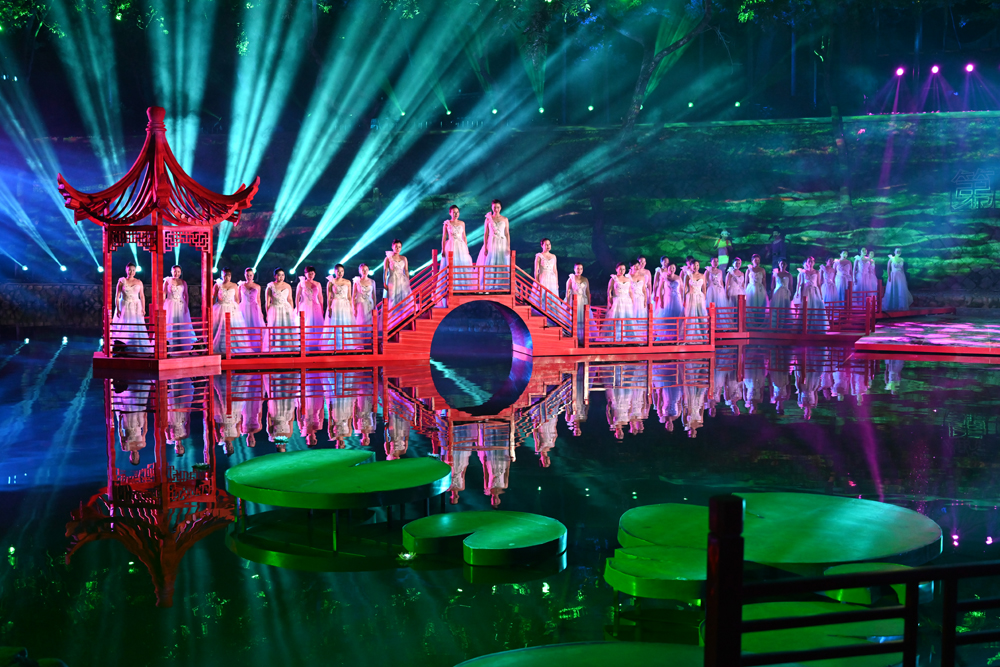 開(kāi)幕式后旅游演藝節(jié)目“廉溪明月”在廉村首演。節(jié)目以中國(guó)歷史文化名村、“開(kāi)閩第一進(jìn)士”薛令之故里——廉村為主舞臺(tái),以廉溪夜景為主背景。皎潔的月光、璀璨的燈光相互掩映,美輪美奐的實(shí)景演出以《月歌》為序,以《水謠》《鳳吟》《蓮頌》為章節(jié)精彩紛呈,在《茶韻》中徐徐落下帷幕。