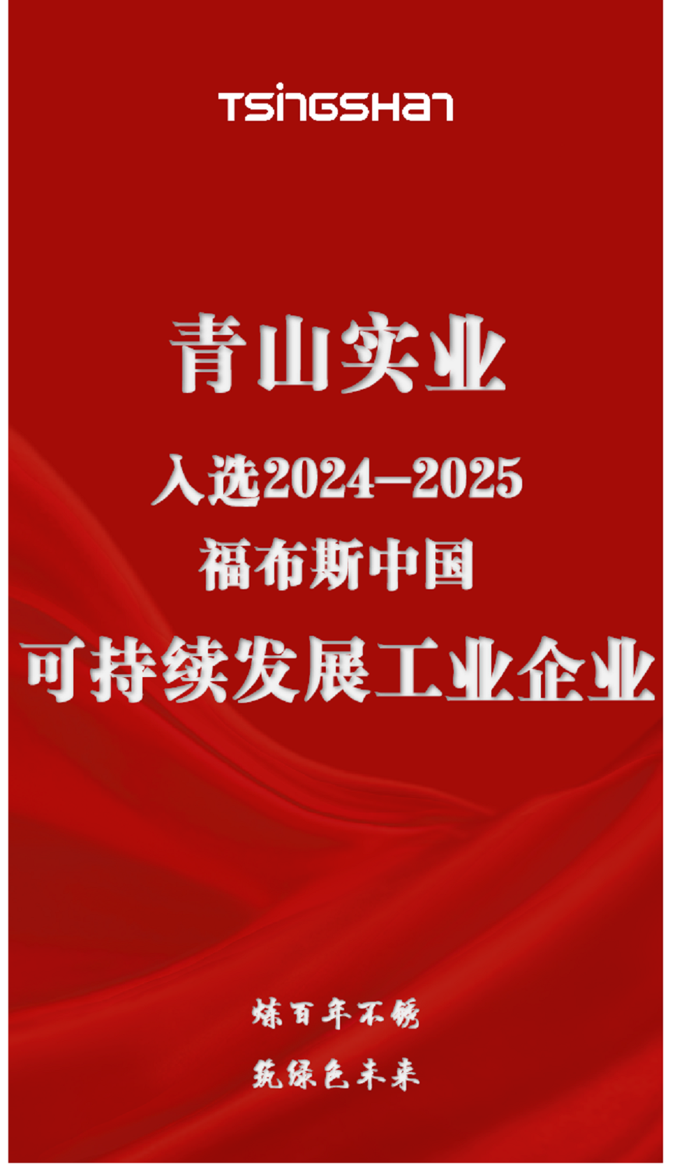 6月25日,福布斯中國“2024—2025可持續(xù)發(fā)展工業(yè)企業(yè)”系列評選榜單重磅發(fā)布。青山實業(yè)憑借在可持續(xù)發(fā)展領(lǐng)域的優(yōu)秀實踐榮耀上榜,成為入選主榜單的40家標(biāo)桿企業(yè)之一。