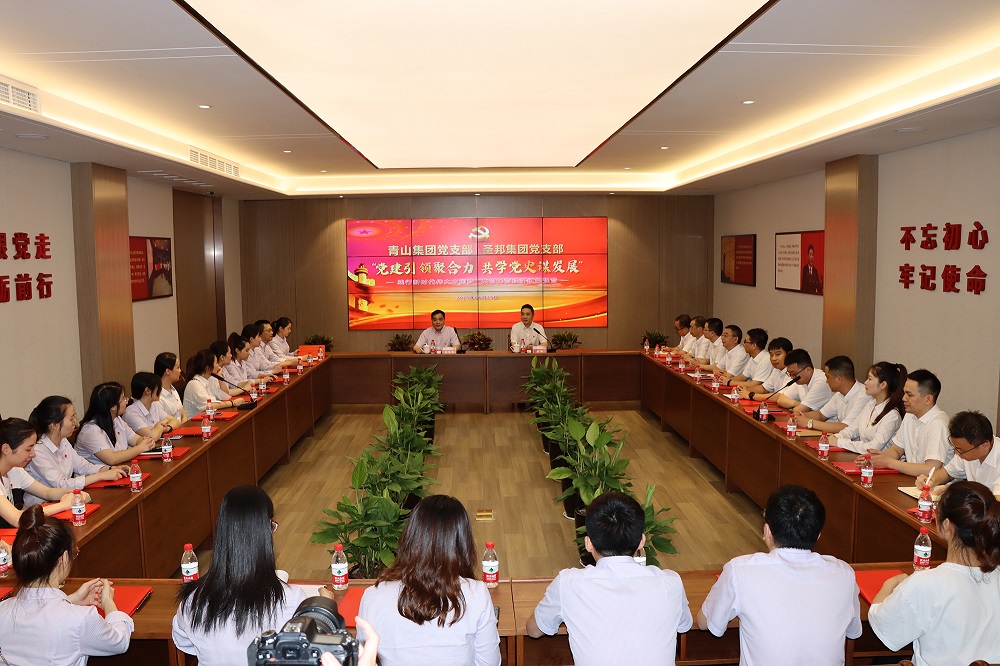 6月29日下午,青山控股集團有限公司總部黨支部聯(lián)合圣邦集團黨支部在圣邦集團有限公司開展了黨史學(xué)習(xí)教育。青山控股總部黨支部書記孫元磷帶領(lǐng)公司黨員及入黨積極分子共20余人參加了此次活動。