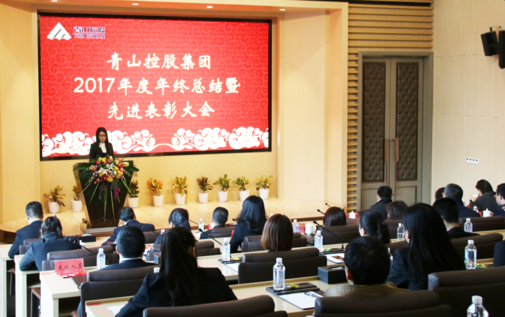 2月7日,青山控股集團有限公司2017年度年終總結暨先進表彰大會在青山總部大樓二樓報告廳順利召開。集團董事長項秉雪、總裁孫建芬及集團總部130余名員工參加了大會。