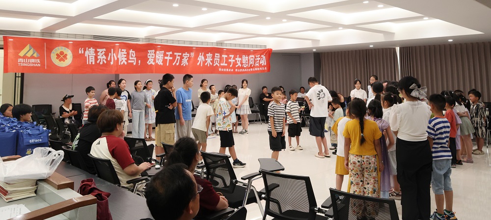 8月15日下午,浙江青山鋼鐵有限公司廠區(qū)內(nèi)的二樓培訓(xùn)室化身“童心樂園”,一場(chǎng)以“情系小候鳥,愛暖千萬(wàn)家”為主題的暑期關(guān)愛活動(dòng)在此溫情上演。來(lái)自全國(guó)各地的70余名員工子女及家屬齊聚一堂,共同參與了此次活動(dòng)。從趣味互動(dòng)到心聲分享,每一個(gè)瞬間都充滿了童真與感動(dòng)。