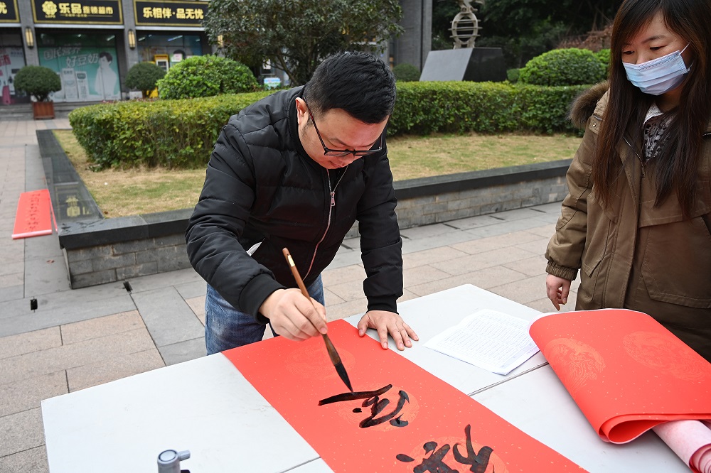 現(xiàn)場(chǎng),寧德市總工會(huì)、青拓集團(tuán)書法家們?cè)诘ぜt桃符上揮毫潑墨,書寫青拓華章。一幅幅翰墨飄香、蘊(yùn)含著新春祝福的春聯(lián)給青拓增添了濃濃的年味。
