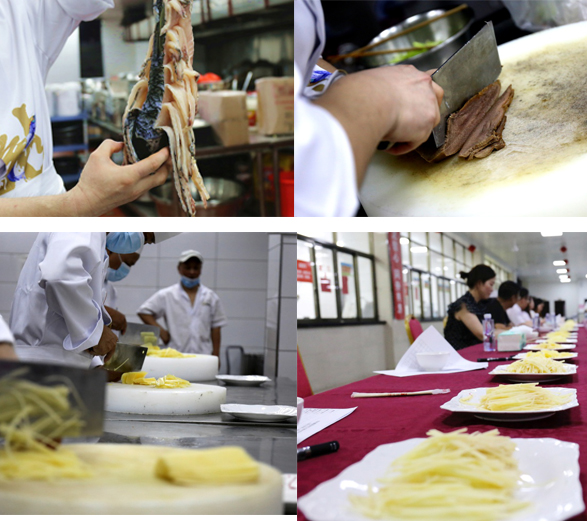 本次大賽經(jīng)初選后共有18名選手參賽,參與指定菜及創(chuàng)意菜兩個部分展示,指定菜為切土豆絲,考驗選手的刀工技術,創(chuàng)意菜為自行發(fā)揮、創(chuàng)意制作兩道菜,評委根據(jù)核定時間、創(chuàng)意、色澤、刀工、口味等方面進行綜合評分。