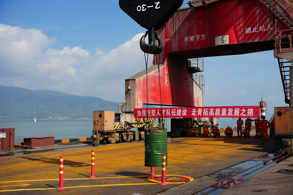 門座式起重機項目的選手們在離地面20米的操作室里,操作門機長臂,吊起鐵桶,水平移動,繞障,最終到達指定點位,這一系列高難度的操作,有效檢驗了參賽職工們的技能素質(zhì)和安全操作水平。