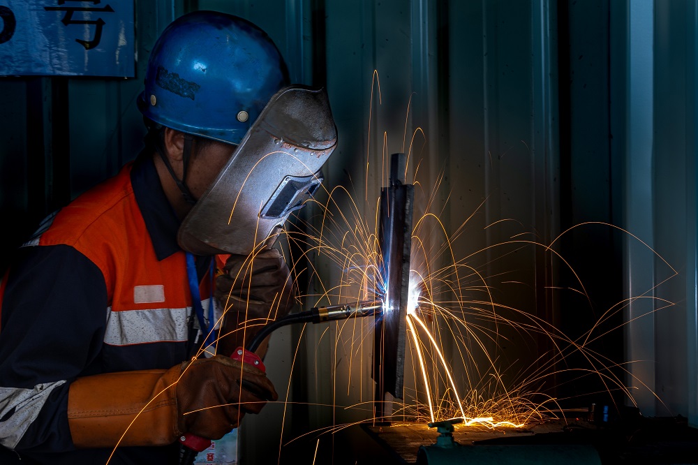 焊工項(xiàng)目比賽共設(shè)有板對(duì)接立焊3G和管對(duì)接水平固定焊5G兩個(gè)項(xiàng)目,板狀對(duì)接焊要求選手采用一個(gè)方向焊接,不可由中間向兩端焊或由兩端向中間焊,其余層數(shù)的方向和打底焊的方向要一致;管狀對(duì)接試件5G采用兩半圓自下而上焊接。比賽現(xiàn)場(chǎng)火光四射,參賽者們眼神十分專注,鎮(zhèn)定自若,操作過程中揮灑自如,充分展現(xiàn)了銳意進(jìn)取的精神面貌。